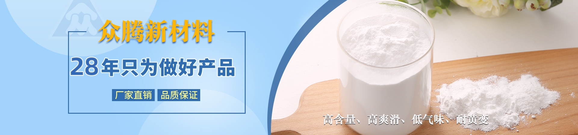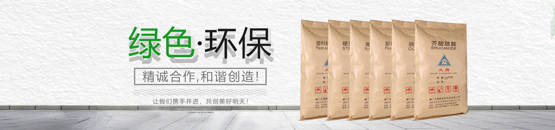 南通海門眾騰新材料科技有限公司與德國ZOTN公司合作,始建于1995年,地處長江三角洲與國際大都市上海隔江相望,座落于江蘇省南通市海門區。公司固定資產2000萬元,具備先進、齊全的科研設施,擁有一批已積累多年開發(fā)、技術應用經驗的專業(yè)技術人員,同類產品采用目前國際先進的自動控制裝置。產品主要有芥酸酰胺、硬脂基芥酸酰胺、油酸酰胺、硬脂酸酰胺、塑料光亮劑、塑料抗靜電劑、EBS、EBO、開口劑等,廣泛應用于生物降解材料、母料、塑料、吹膜、PE粉末涂料、 油墨等行業(yè),年銷售量3000噸,出口量占60%。公司產品均已通過SGS綠色環(huán)保檢測,符合歐盟ROHS環(huán)保指令,并達食品、醫(yī)藥級要求。忠誠合作,和諧創(chuàng)造!讓我們攜手并進,共創(chuàng)美好明天!